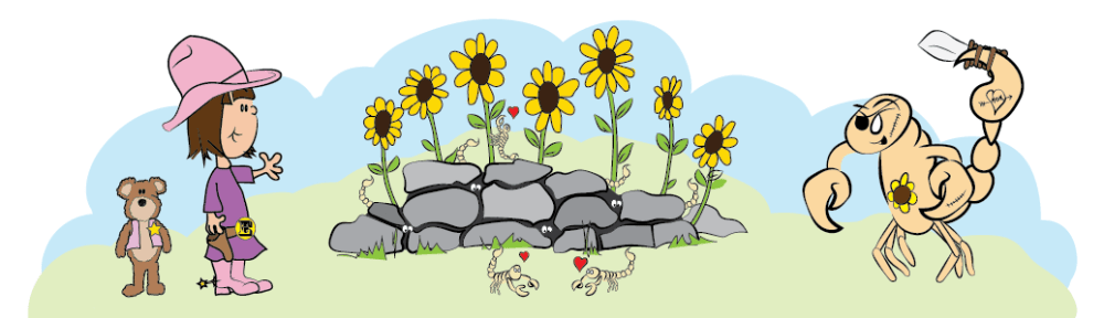 Along the way, a colorful cast of characters guide them thru the perils of the unfamiliar desert. Waiting for them at the final showdown in the Scorpion Saloon, is the most rotten villain in the history of villain-hood: Eyepatch the Scorpion. A new challenge is met on each page and their sense of adventure and goodwill eventually prevail as they discover that life in the desert is not all it appears.